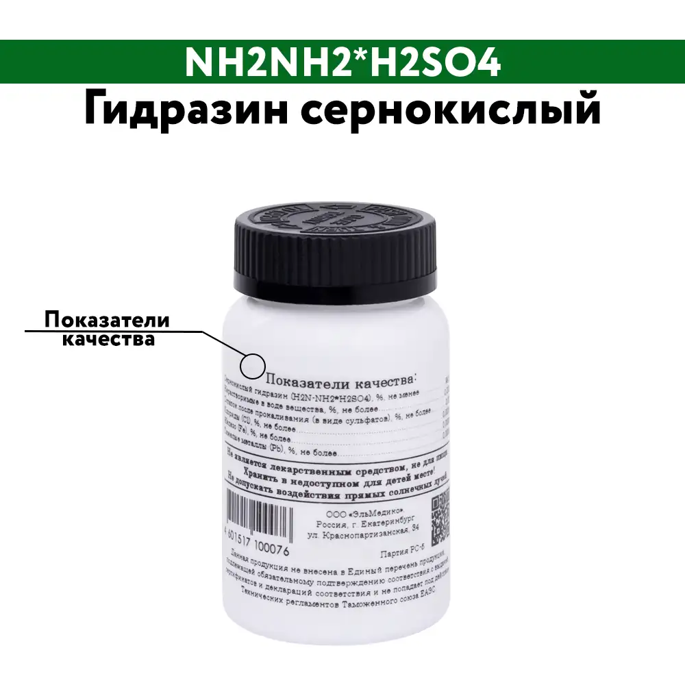 | Сернокислый гидразин (H2N-NH2*H2SO4), %, не менее | 99,5 |
