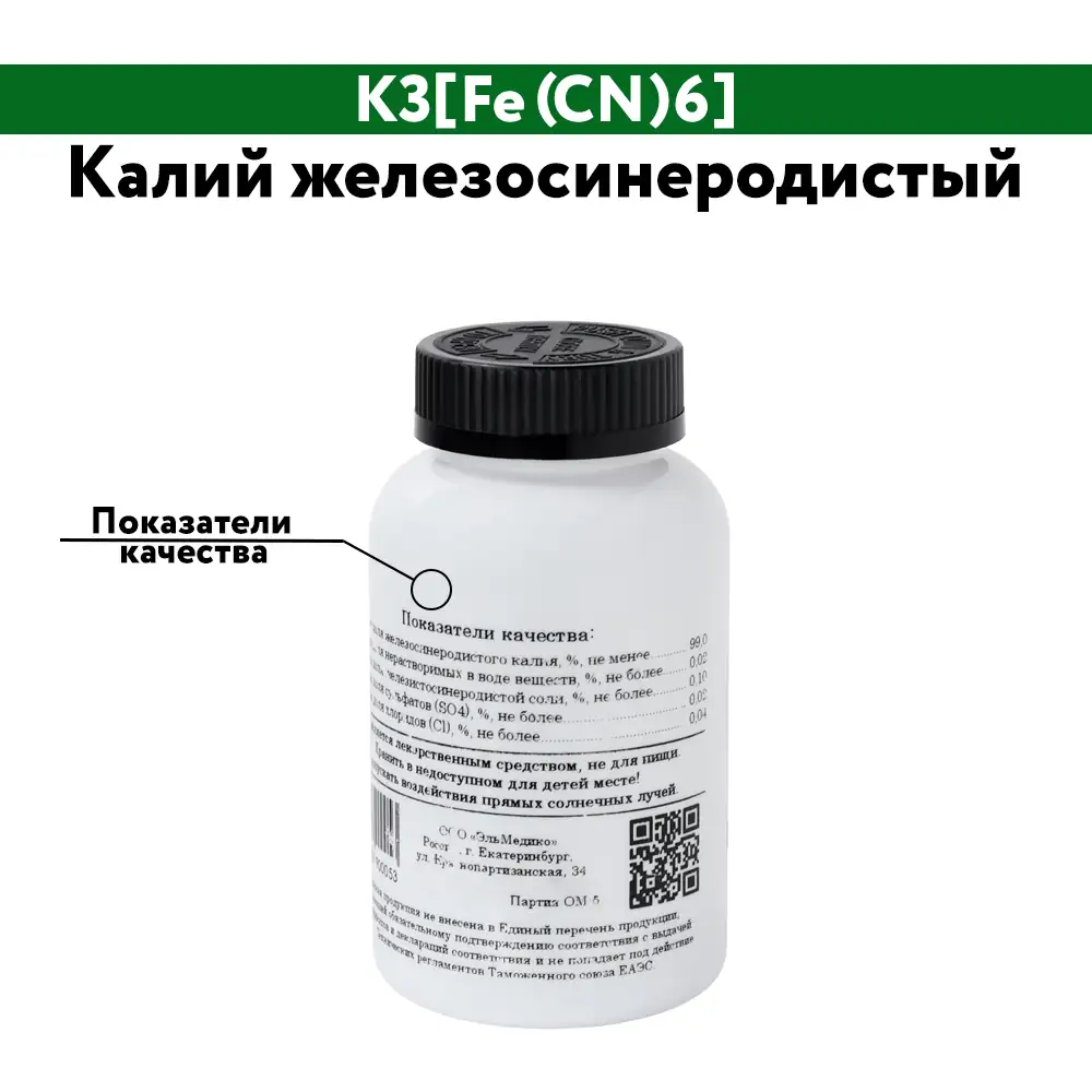 | Массовая доля железосинеродистого калия K3[Fe(CN)6], %, не менее | 99,0 |