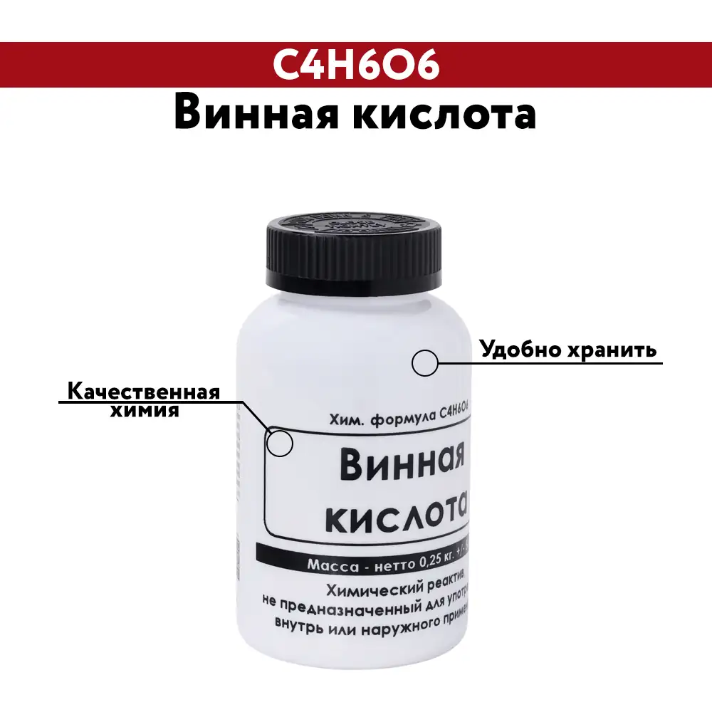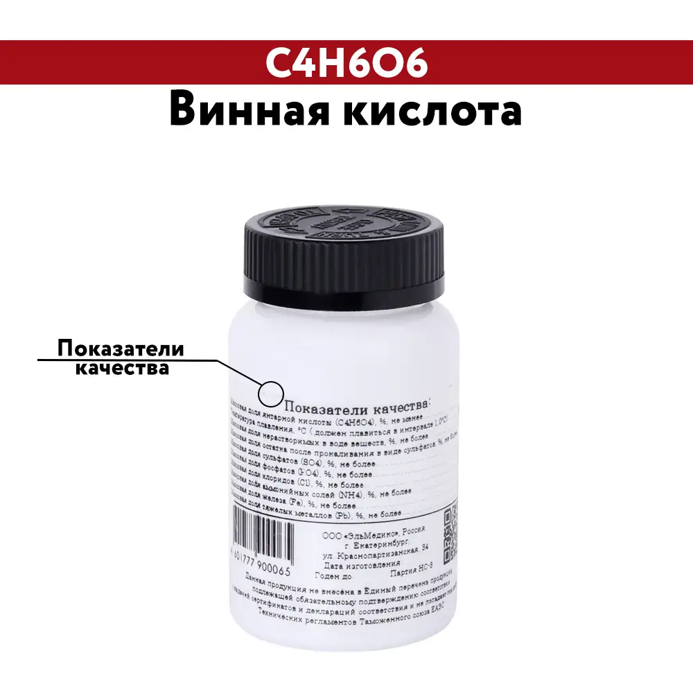 | Массовая доля винной кислоты (C4H6O6), %, не менее | 99 |